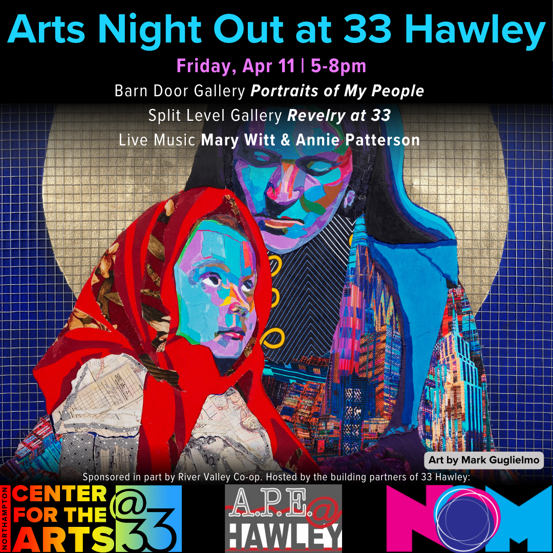 Please join the Northampton Center for the Arts, A.P.E. Ltd., and Northampton Open Media at 33 Hawley for an opening reception with refreshments and live music during Arts Night Out on Friday, 6/13, from 5:00-8:00 pm!