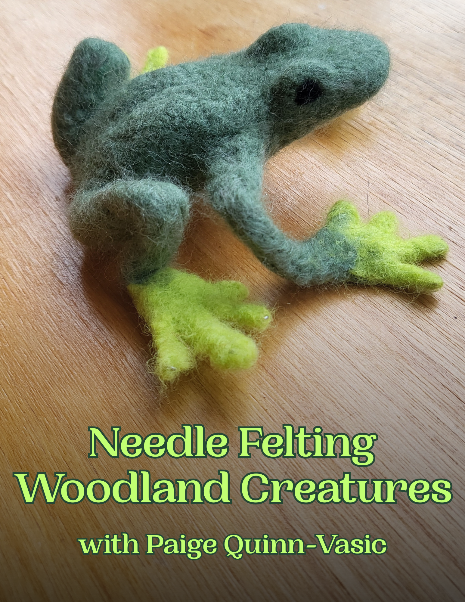 Take some much needed time to craft a new little guy for your collection of desk buddies, or turn a felted turtle into your copilot for your car. The world is in great need of your whimsy, and what better way than to gather with a small group of creatives and learn the meditative practice of needle felting. Your instructor, Paige, is well versed in the properties of wool and can help guide you as your new fuzzy creation is realized. Maybe your frog wizard has a side kick or a silly mode of transportation. Tell a story with your creations and reap the benefits of mindful making along the way. Together we will learn how to build a small wire armature to give structure and support to our creatures. Then we will use barbed felting needles and handfuls of soft colorful wool to give our sculptures a sturdy form. And finally we will add colorful touches that will bring them to life.