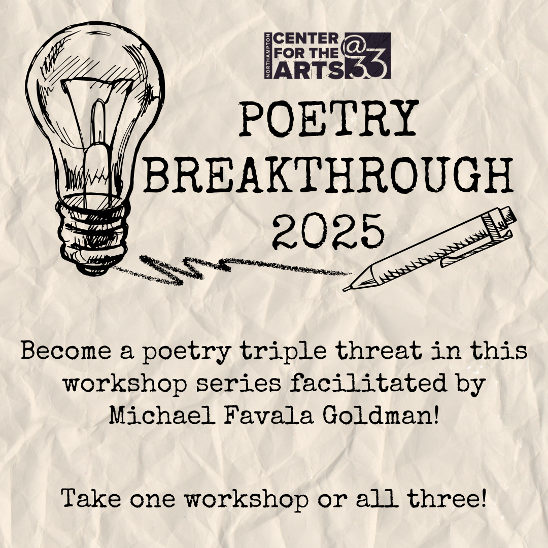 Please register in advance through Straw Dog Writers Guild! Please pay through the Center for the Arts via Paypal here, via Venmo @Northampton-CenterForTheArts, or by mailing a check made out to NCFA to PO Box 366, Northampton, MA 01061. Please note Poetry Meet-up in the memo line.